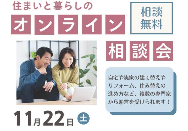 安心・納得の住まいづくりのため、公正中立なプロがアドバイスする(一財)住まいづくりナビセンター では、11月22日(土)に「住まいと暮らしのオンライン相談会」を開催します。